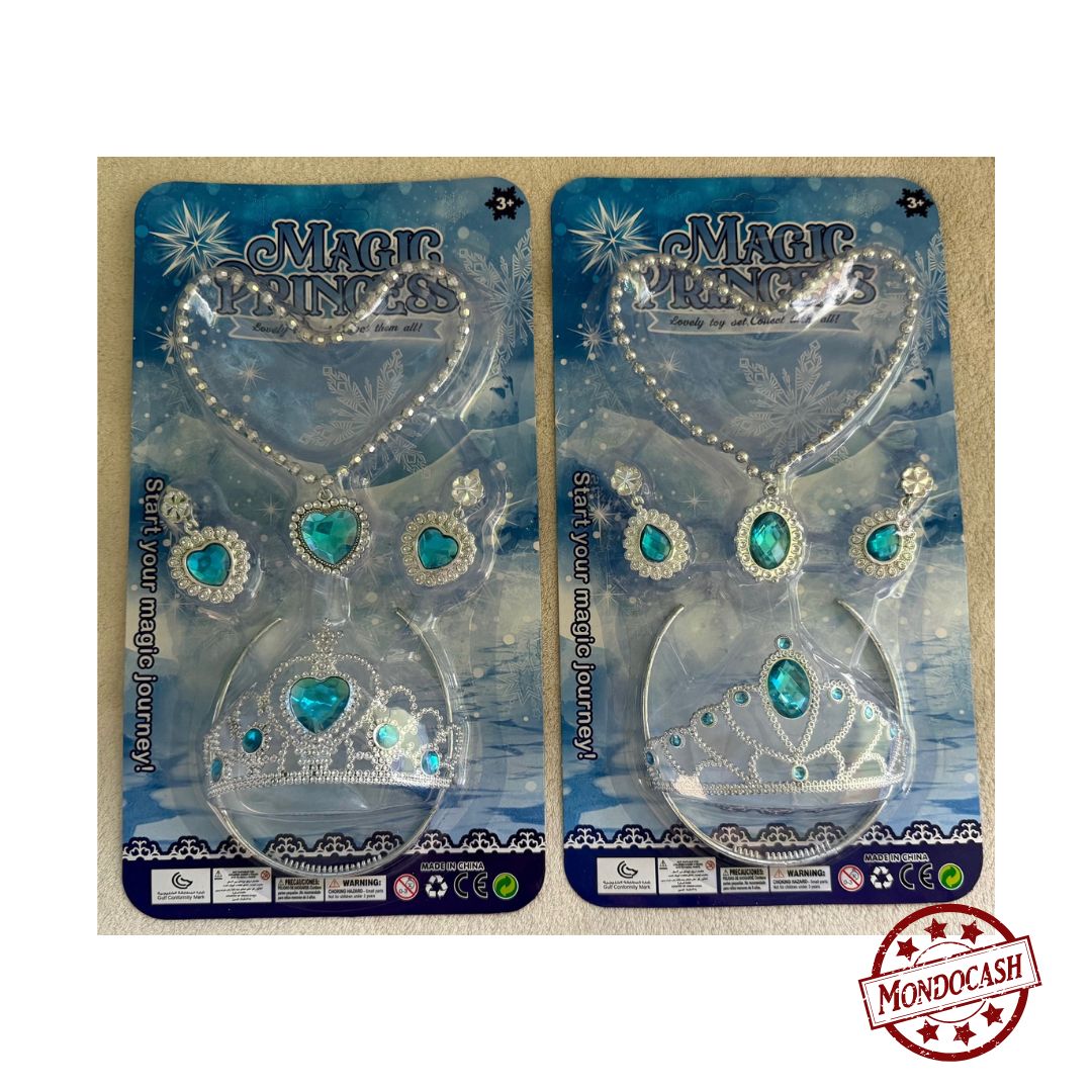 Jouet de bijoux comprenant collier, diadème, boucles d'oreilles avec des joyaux de couleur bleu