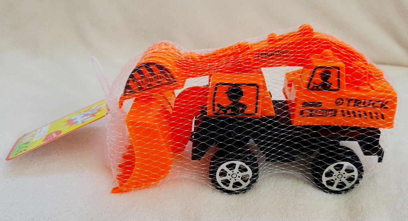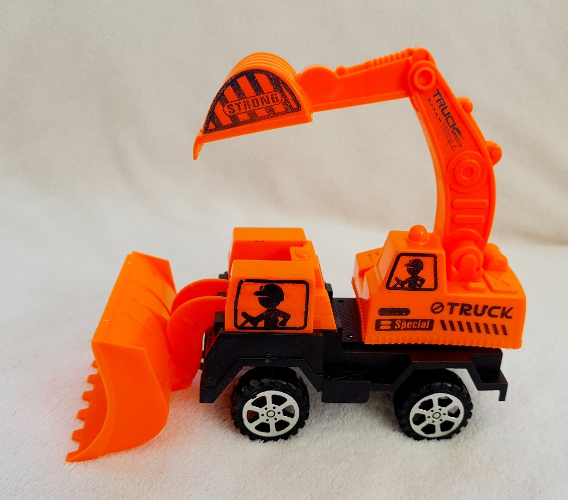 Jouet de pelleteuse sous filet, roues libres, pelles articulées de couleur orange